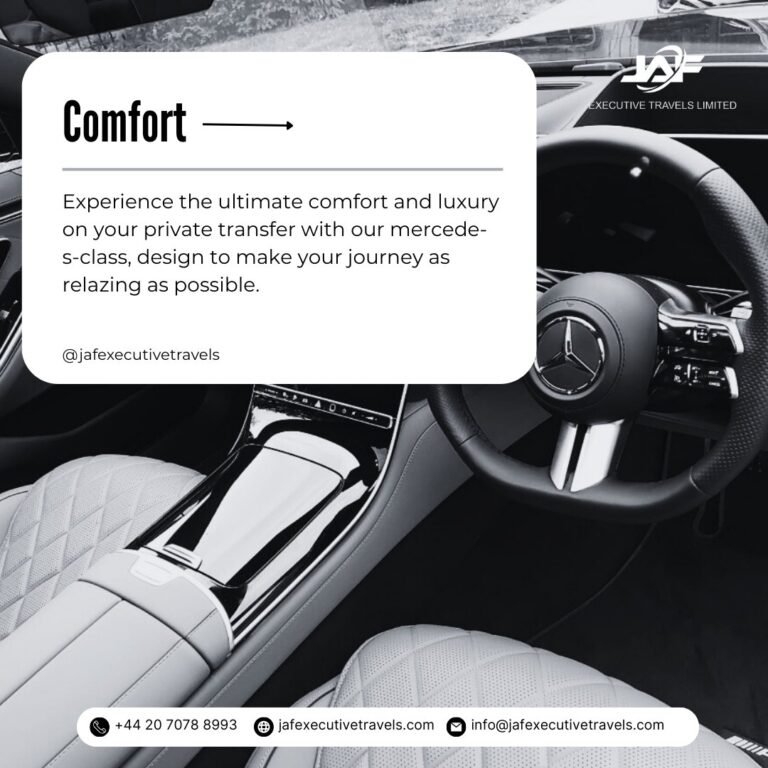 The company invests in well-maintained vehicles equipped with safety features, comfortable seating, heating and cooling systems and spacious luggage areas. Every vehicle is driven by an experienced, DBS-checked and fully licensed driver. This combination of comfort, safety and professionalism gives customers complete peace of mind.